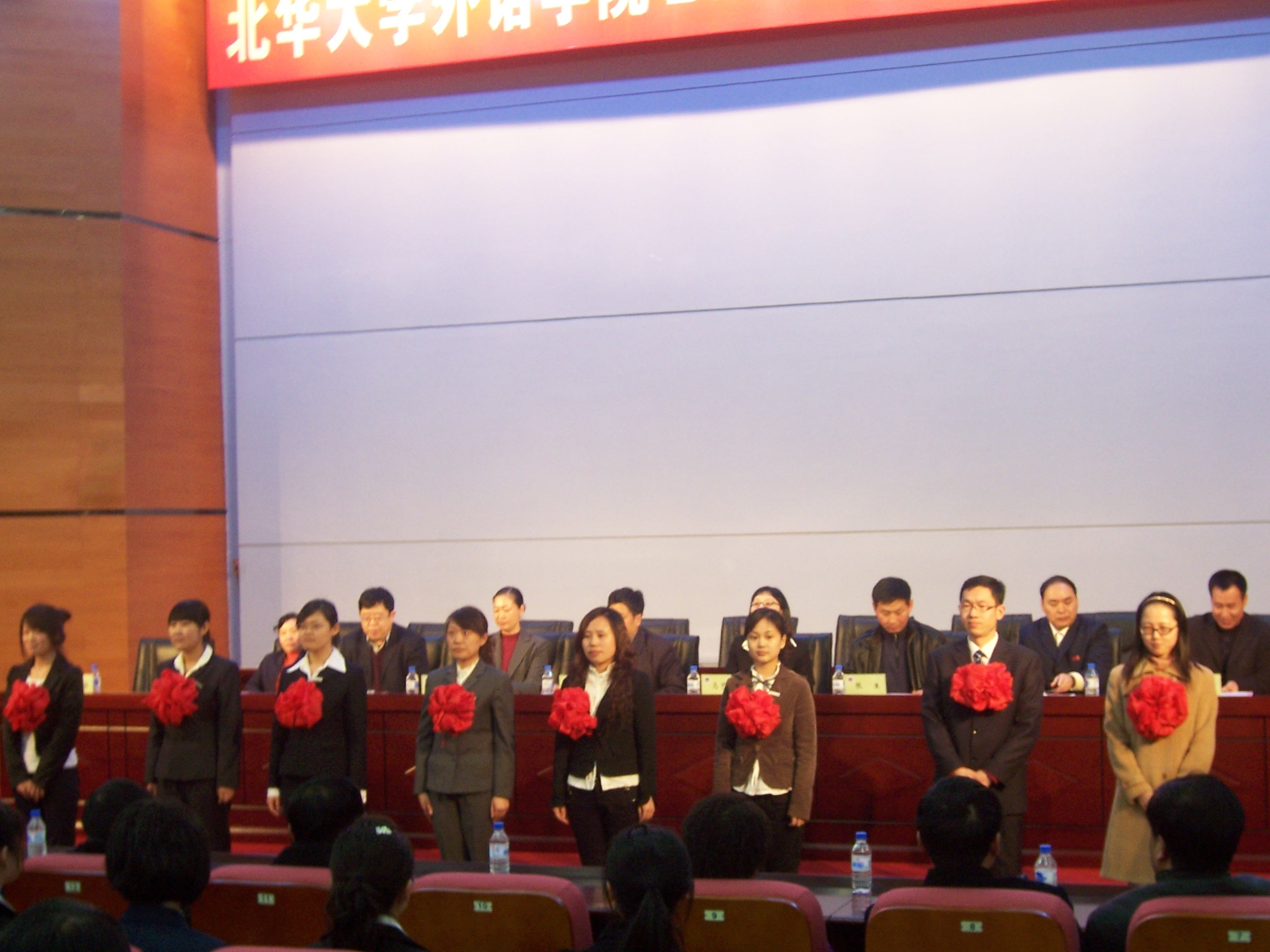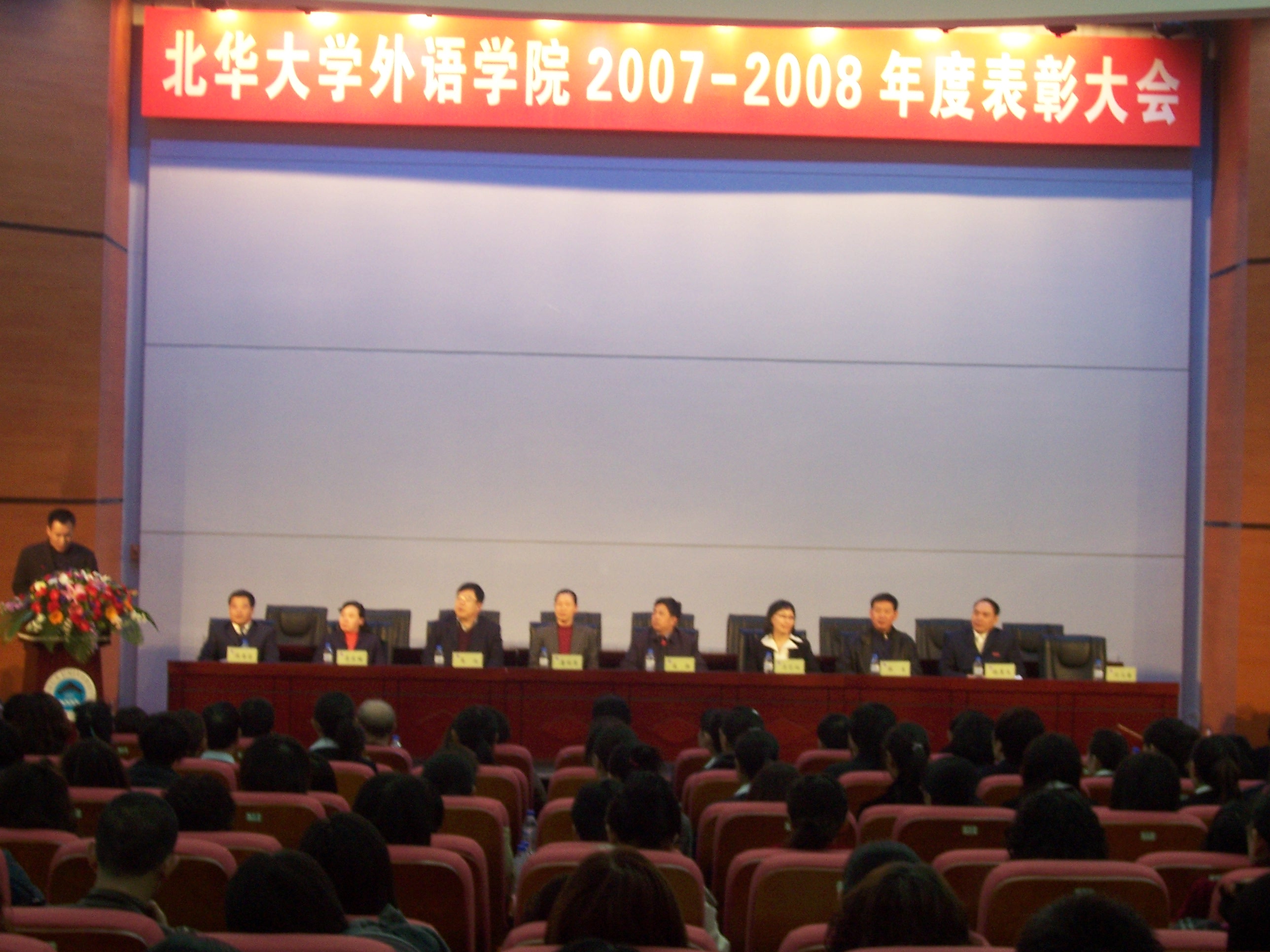 3月11日下午,在国际交流学院报告厅中,伴随着雄壮的国歌声,bet5365.net召开了“北华大学bet5365.net2007-2008年度表彰大会”,表彰过去一年里在教学、科研、学团工作、学生就业、志愿者服务等领域里有突出贡献的教师、学生集体、学生个人。会议由bet5365.net党委书记侯奎岩主持,出席大会的学校领导有北华大学副校长高新、学生处处长詹丽萍、教务处副处长焉波、校团委书记张生以及bet5365.net领导班子、全院教师和受到表彰的学生代表,副校长高新做了重要讲话。